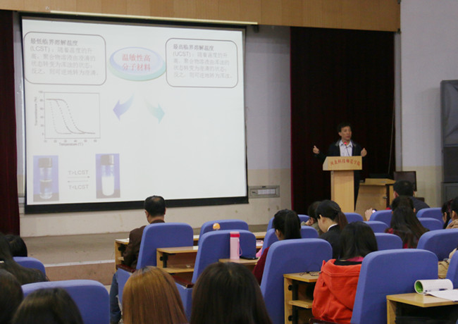报告会上,邓奎林教授首先介绍了什么是温敏性聚合物及其应用,提出温敏性聚合物材料在生物医学领域应用中存在两个最基本问题。之后,邓教授课题组经过多年研究提出了解决两个最基本问题的方法,为新型温敏性聚合物的制备提供了有益的指导,极大提高了合成工作的效率与准确性。