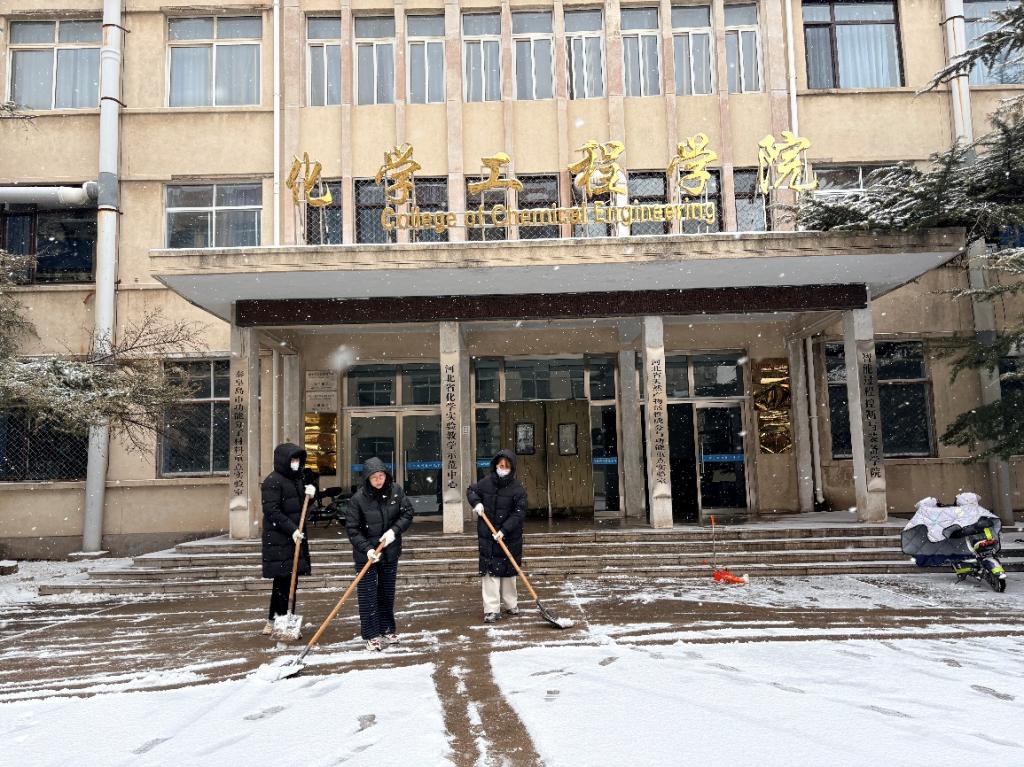 寒风中,大家齐心协力,挥舞着手中的工具,铲的铲、推的推、扫的扫,干得热火朝天,很快就在厚厚的积雪中开辟出了一条从主干道直通实验楼门口的“安全通道”,有效消除了出行隐患,既保障了培训活动顺利进行,也为后续师生出入楼宇提供了安全便利。